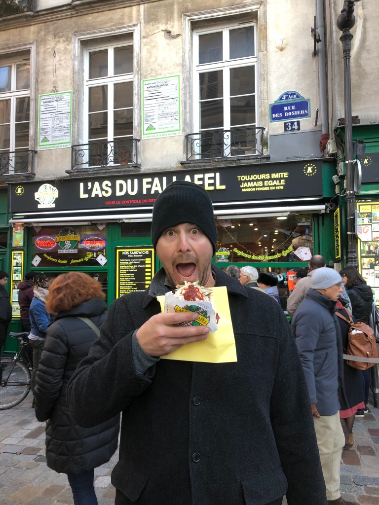 Visit the Jewish Quarter. There is a lot to do in this neighborhood and worth walking around and taking your time in. We browsed a number of food shops, clothing boutiques, and markets. Must-sees include the Picasso Museum, L’As Du Falafel (there is a line but it is worth the wait), and the Museum of Jewish Art and History. Detour to the Les Halles Christmas Market. This was an accidental find and one of our favorite sporadic moments of the trip. Eat a raclette and anything that comes dripping in melted cheese. Try more vin chaud to keep you warm as you walk around.