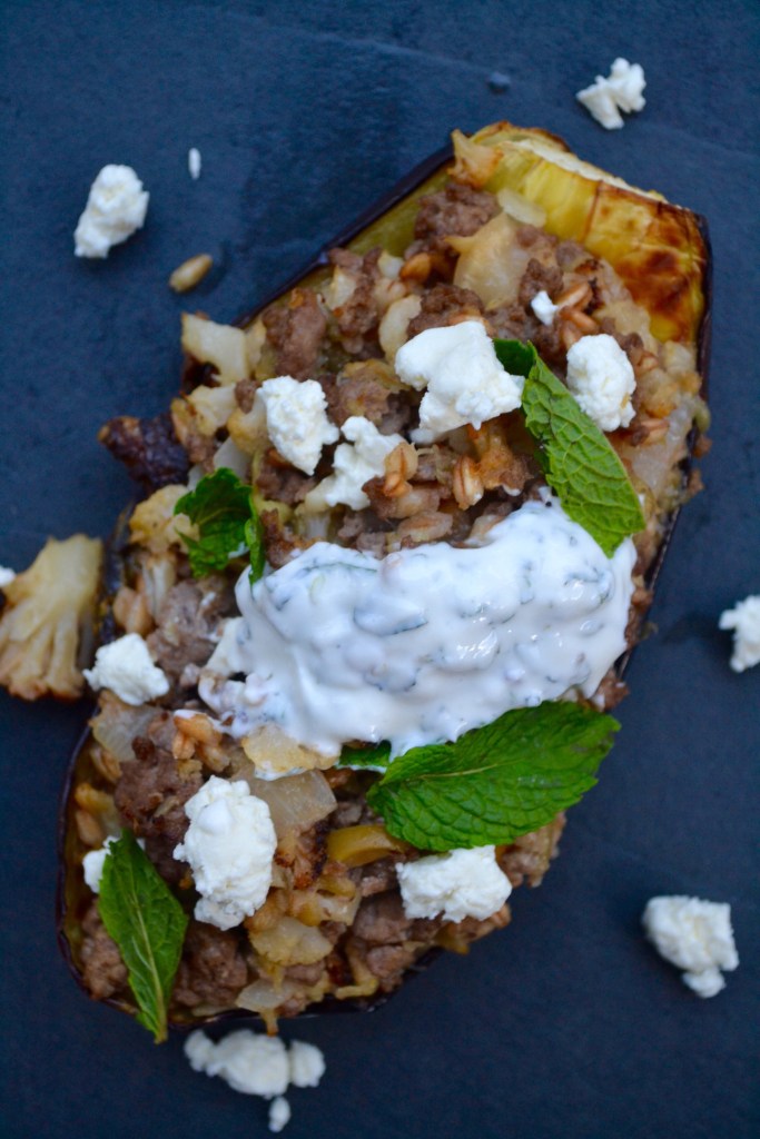 During this time of social distancing, we have become very specific about which markets we are going to and how we grocery shop and plan for the week. One of our favorite middle eastern markets, Arash, was our go-to this past week and this dish is inspired by all of the great ingredients that we found there! We typically have had stuffed eggplant using Italian ingredients but loved the flavor combinations of cauliflower, lamb and eggplant. The sauce can easily be swapped or paired with tzatiki or spicy green tahini to help make the flavor pop!