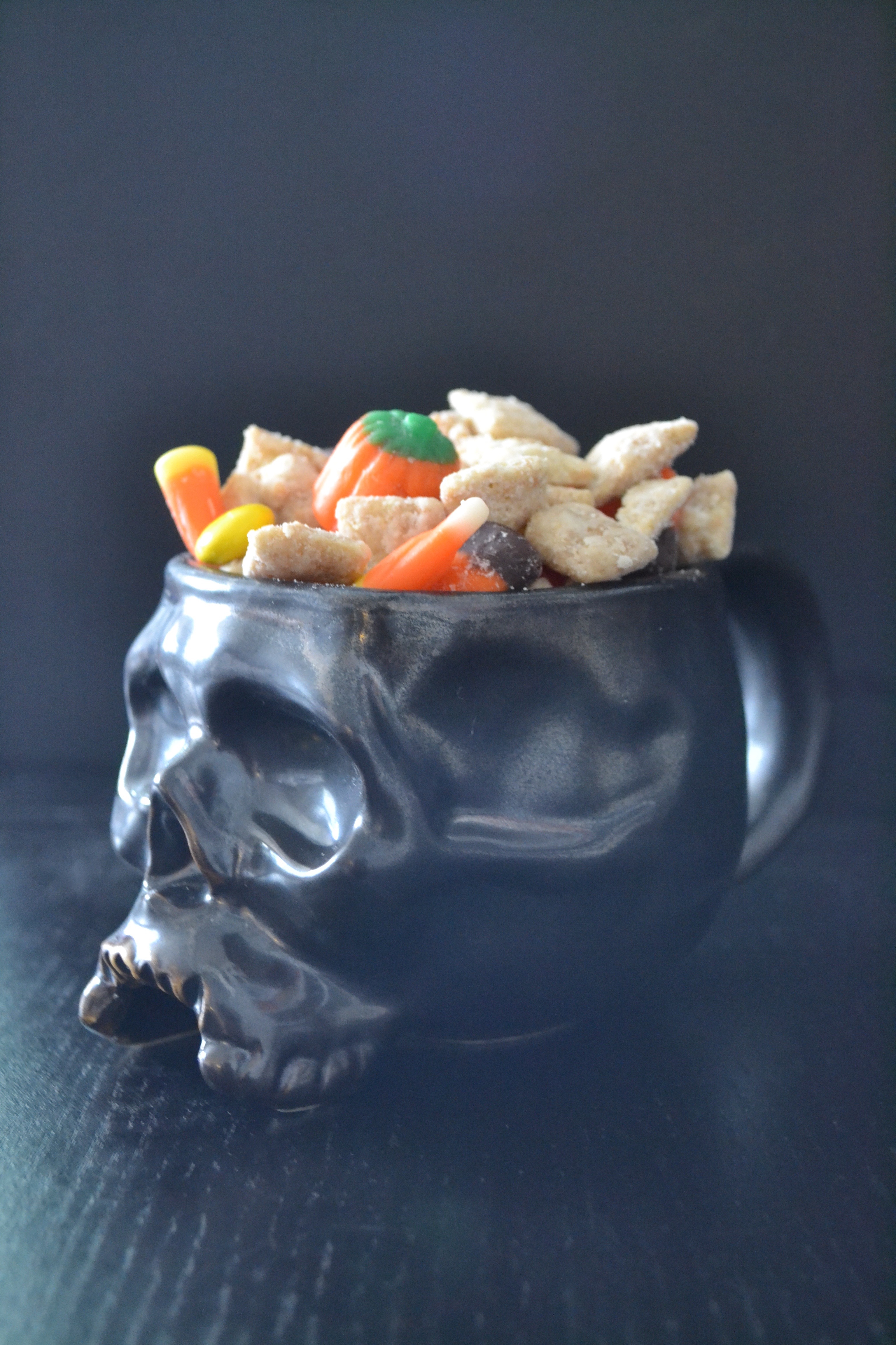 One of the joys of Tate having a human brother is that we now have a new excitement for celebrating the holidays. Even though Tate’s brother Myles is just over a year old, we have gone off the deep end with the celebrations for Halloween. This Trick or Treat Puppy Chow is the perfect, whimsical Halloween snack for both kids and parents alike. It’s also a great way to use up any extra candy after Halloween is over. We have toned down the sugar in a traditional puppy chow recipe to compensate for all the added candy. It’s a quick, easy recipe to add to your Halloween festivities over the next few days, and a guaranteed crowd pleaser regardless of the average age of your guests.