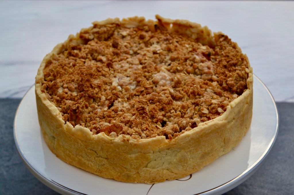 11. Remove the pie from the oven and let it rest for 30 minutes before slicing and serving. You can cover the springform in foil to keep it warm while it rests, and serve with ice cream, if desired.