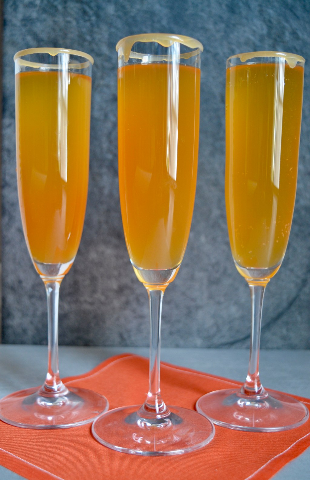 We always like to have a cocktail for Thanksgiving to help get in the spirit for our favorite holiday. There is something about a signature cocktail that sets a nice tone for the evening and is always a mood booster. Even though we aren’t having guests for Thanksgiving this year, feeling “in the spirit” is more important than ever. What better way to kick off a holiday with a bang than a morning Caramel Apple Mimosa? We’ve combined our love of bubbly champagne, our fall favorite apple cider, and a dash of caramel vodka for a sweet, decadent mimosa. It’s a great beverage to jumpstart Thanksgiving morning and makes a great dessert night cap for later at night.