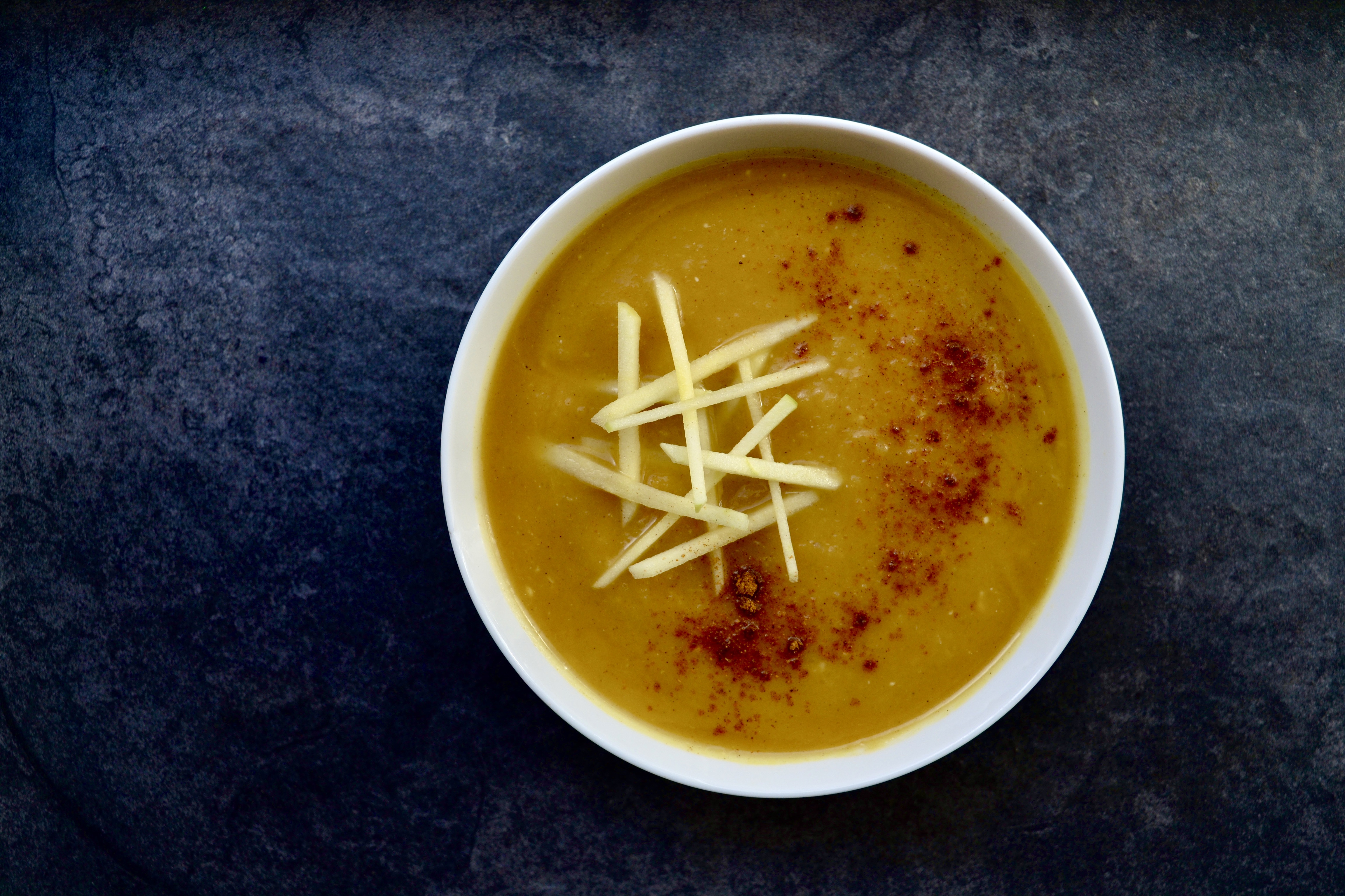 - Serve the soup in large bowls with an additional sliced apple and sprinkle of ras al hanout, if desired. A loaf of crusty bread will go a long way with this soup as well.