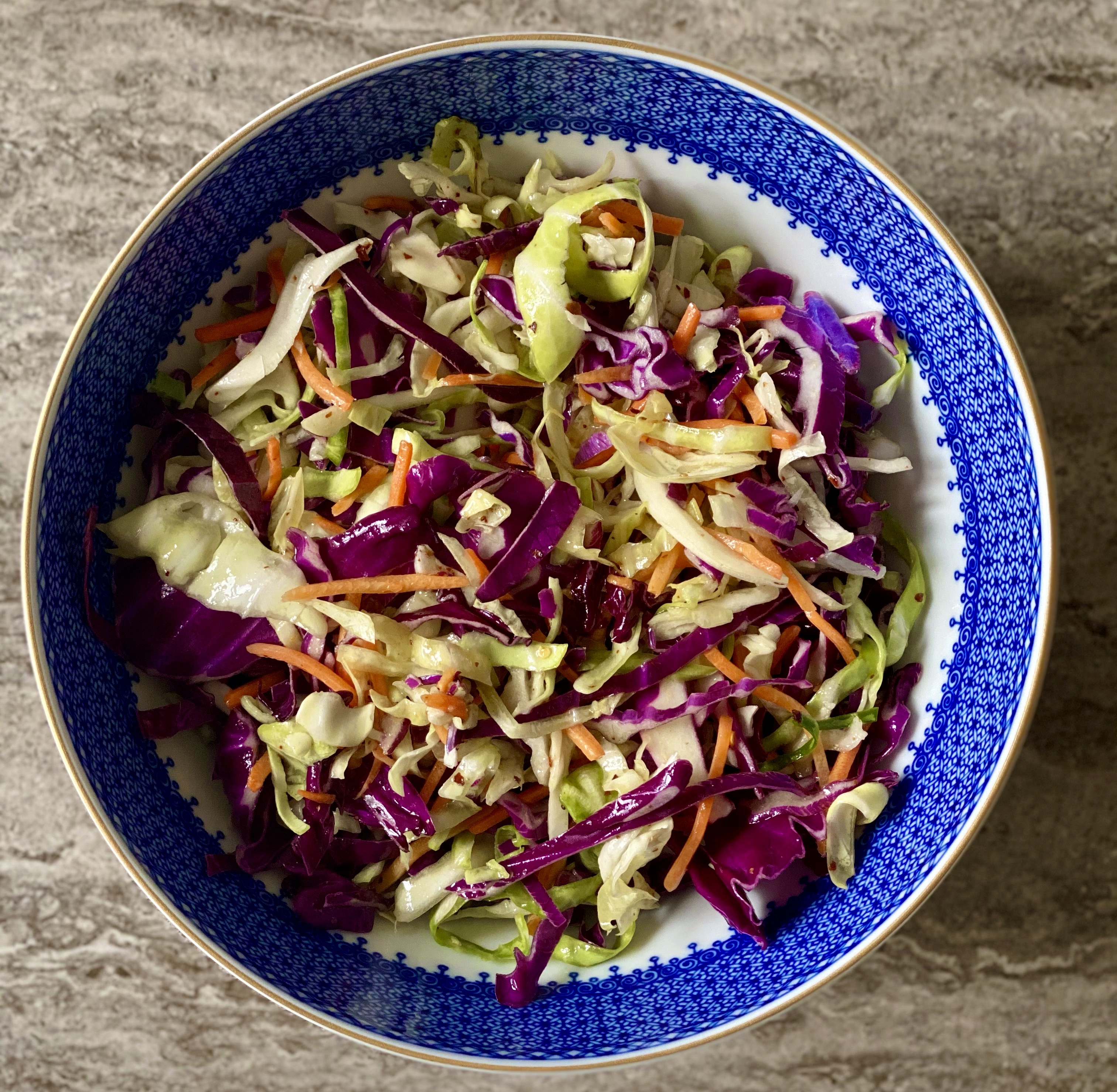2. In a medium bowl, combine the pre-shredded cabbage mix and carrots and toss with the dressing. Let sit for at least 5 minutes before serving or store in refrigerator overnight.